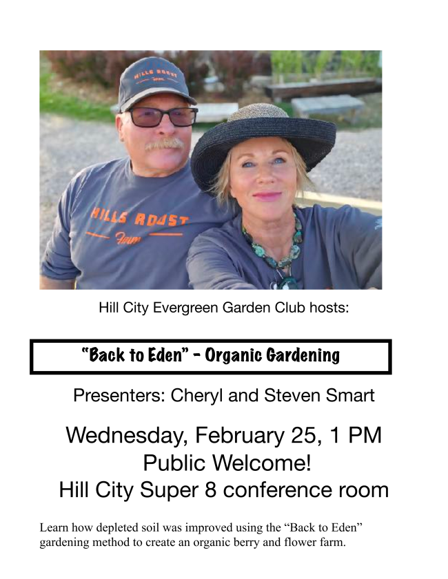 25feb1:00 pm2:00 pm"Back to Eden" - Organic GardeningHill City Evergreen Garden Club