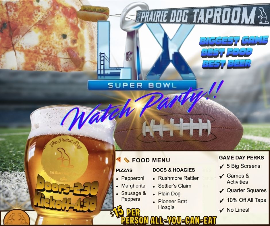 08feb3:00 pm9:00 pmSuper Bowl at Prairie Dog Taproom$15 per person, all you can eat, made to order